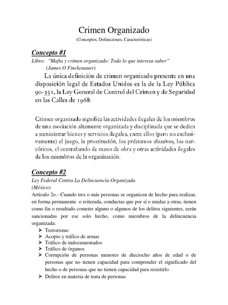 El crimen organizado, también llamado el crimen organizado, también llamado delincuencia organizada, es toda aquella organización compuesta por.